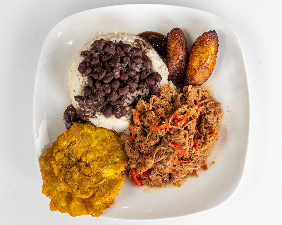 shredded beef cooked in Cuban spiced tomato sauce on freshly pressed Cuban bread