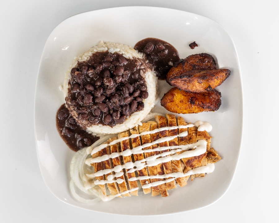Cuban marinated grilled chicken breast with caramelized onions, lettuce, tomato, & topped off with mojo aiolo on freshly pressed Cuban bread