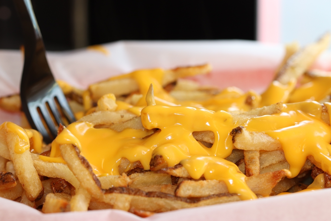 Cheese fries with slices of gyro meat, diced onions & tomatoes with a side of tzatziki sauce!