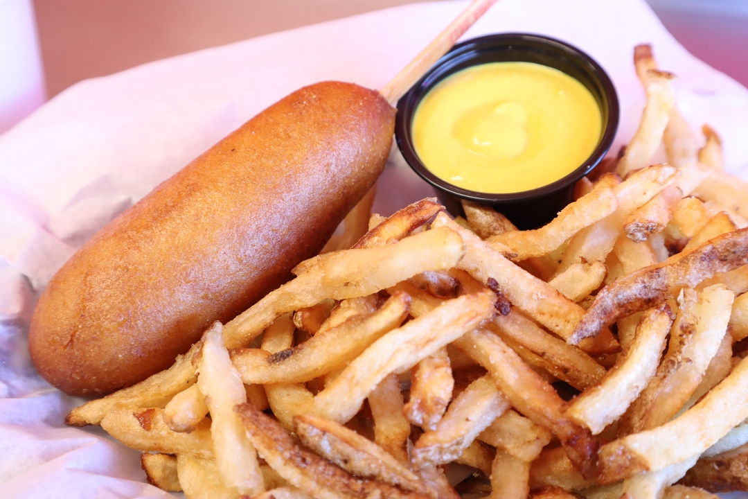 Kids meals come with a half portion of fresh cut fries and a drink choice of juice box or water bottle.