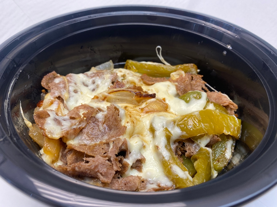 Chopped and seasoned with grilled onions, sweet peppers, and mozzarella cheese
